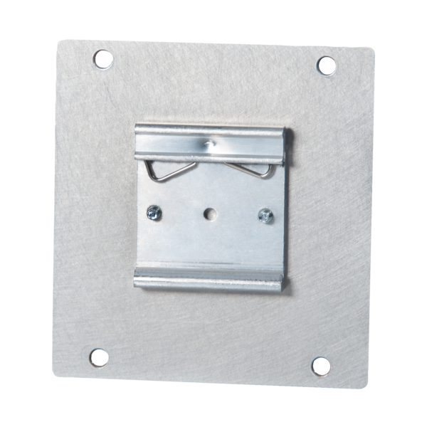 The mounting rail adapter is an accessory for the e.Guard RCM B residual current monitors and enables mounting on a mounting rail. The bar retaining clip and the mounting plate are joined using the screws provided. Once mounted, the mounting rail adapter is secured on the back of the residual current monitor.