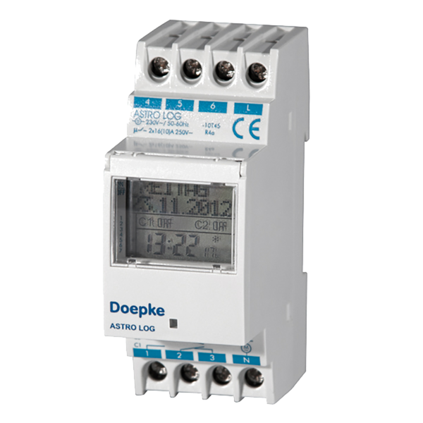 Electronic timer switch with solar time adjustment, 250-hour reserve power, 230 V AC