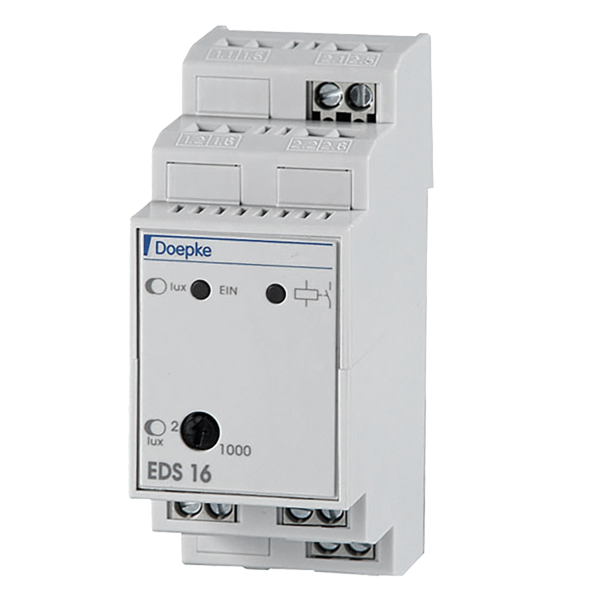The twilight switches of this series are devices for distribution board installation with an external light sensor. It is possible to install the switch and external light sensor anywhere, regardless of the lighting to be switched; the distribution board easily handles the settings for the switch-on/switch-off thresholds. The operating and control voltage of the devices is 230 V AC.
